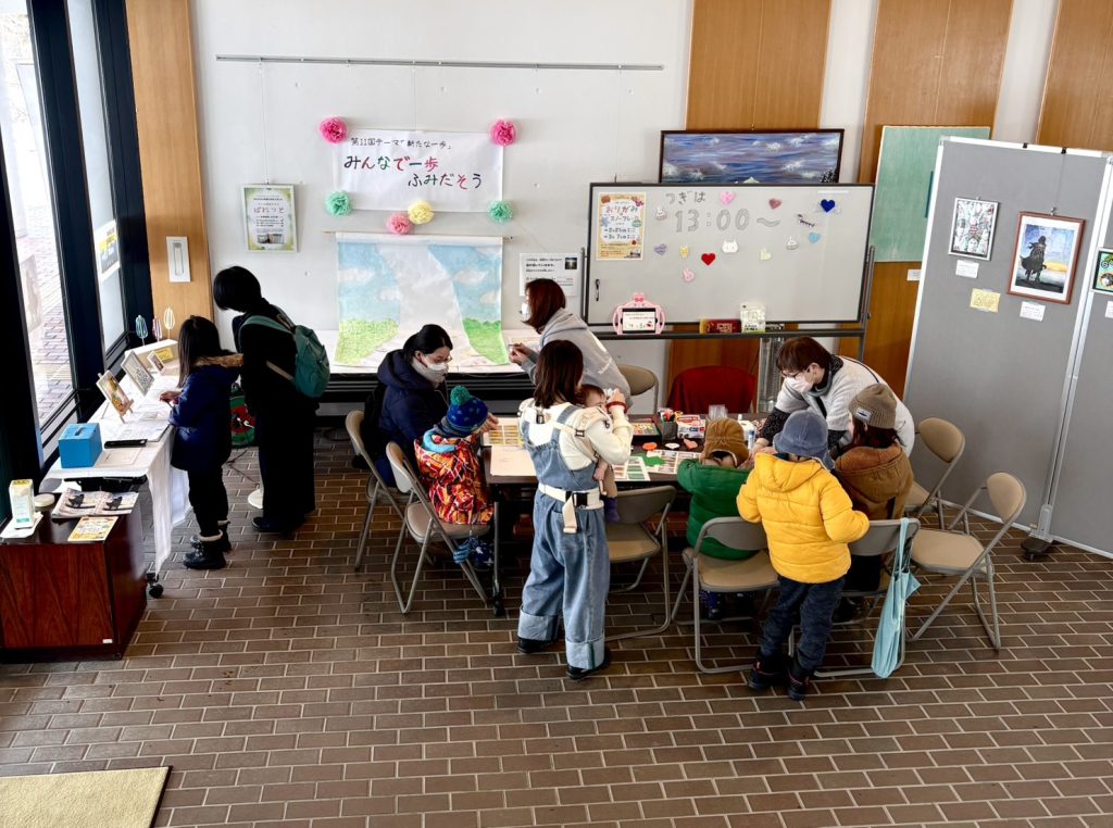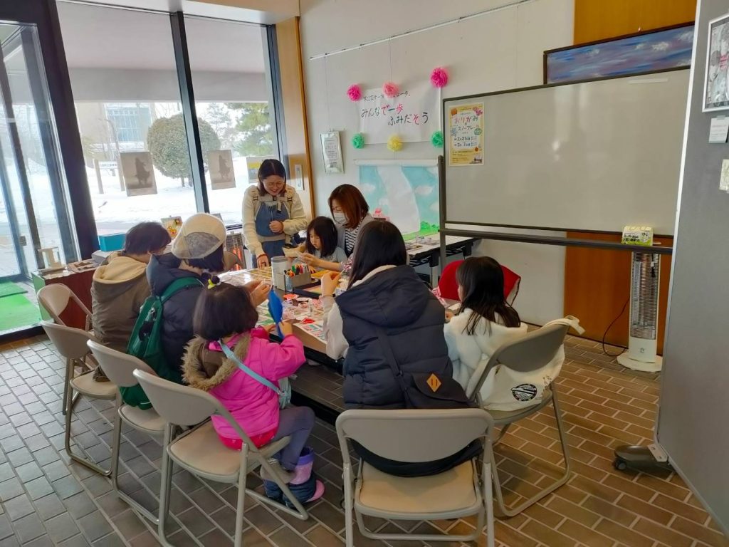 2月21日、図書館1階ロビーにて「みんなであそぼう おりがみ&スノーフレーク体験会」を開催しました。