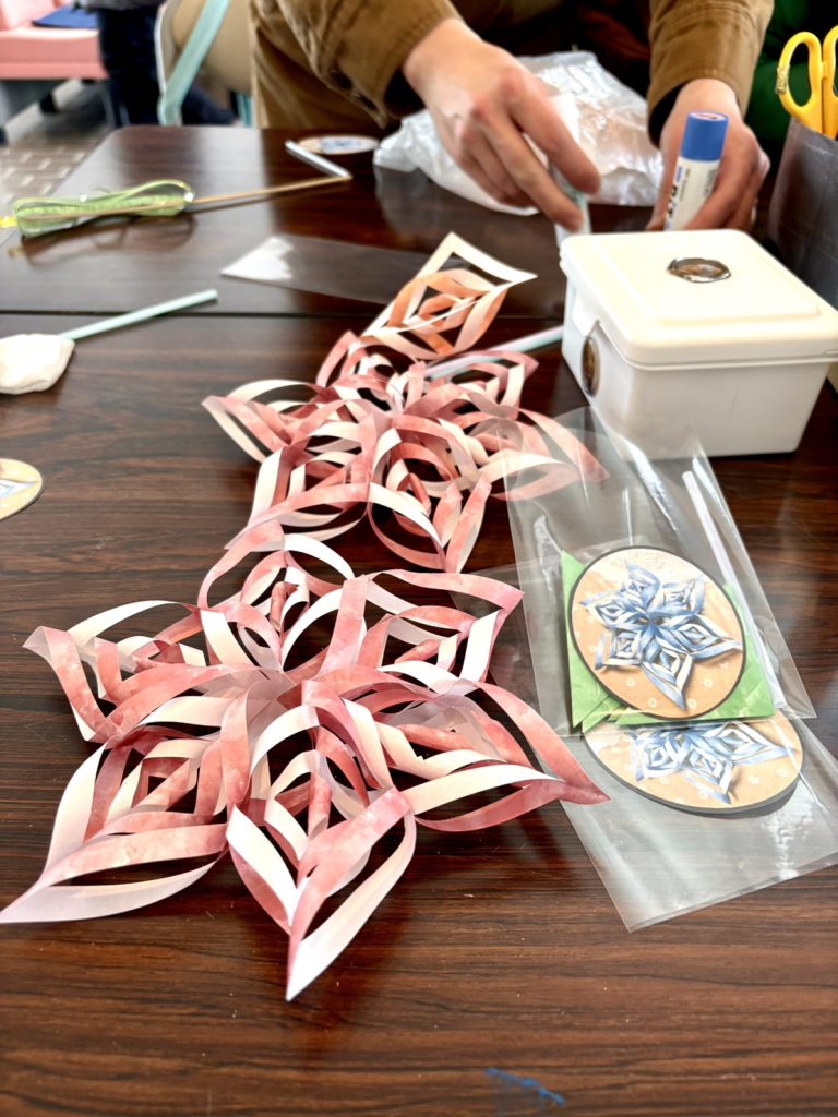 ぱれっとメンバーが加工した折り紙を使い、繊細なスノーフレーク(雪の結晶)づくりや、折り紙で動物を折るなど、それぞれ思い思いに楽しい時間を過ごしていただきました。